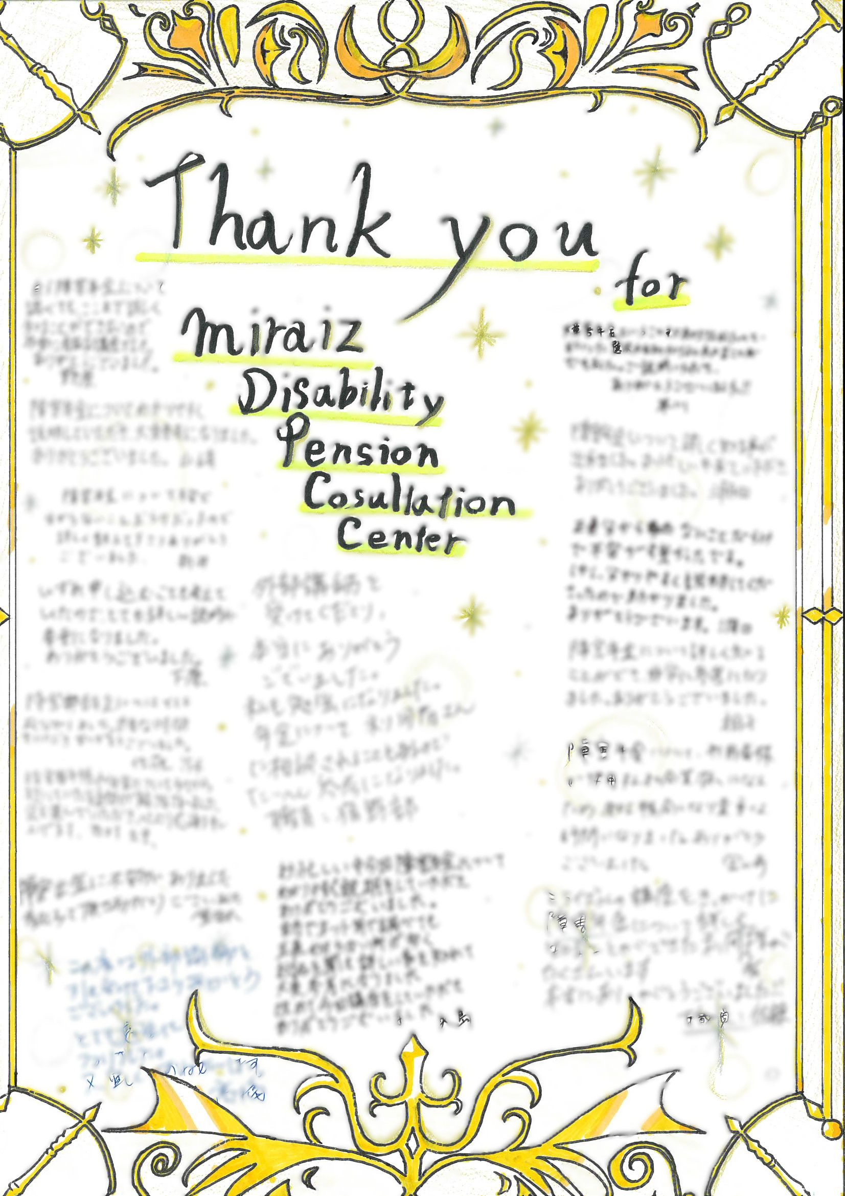 そのうち1件につきまして、就労移行支援事業所のスタッフ様より、心温まるお礼の色紙を頂戴しました。